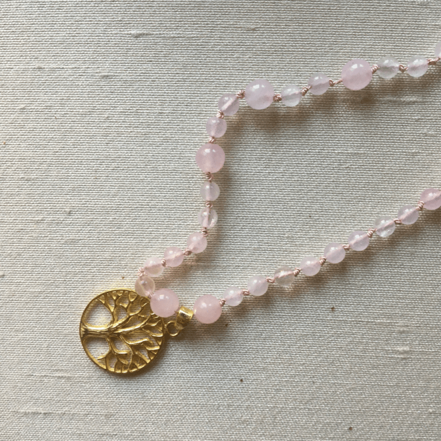 Die Mala ist eine Meditationskette, die Dir hilft, in der Form eines Ankers wenn Du sie durch die Finger gleiten lässt, Deine Gedanken zu beruhigen. Auch bietet sie ganz tolle Unterstützung beim Affirmationen sprechen.