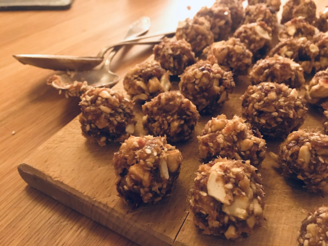 Diese Kraftkugeln können auch noch mit Honig versüsst werden, mir reicht jedoch diese Süsse. Ein perfekter, energiespendender Snack, der aber auch den Gluscht nach Süssem herrlich stillt.