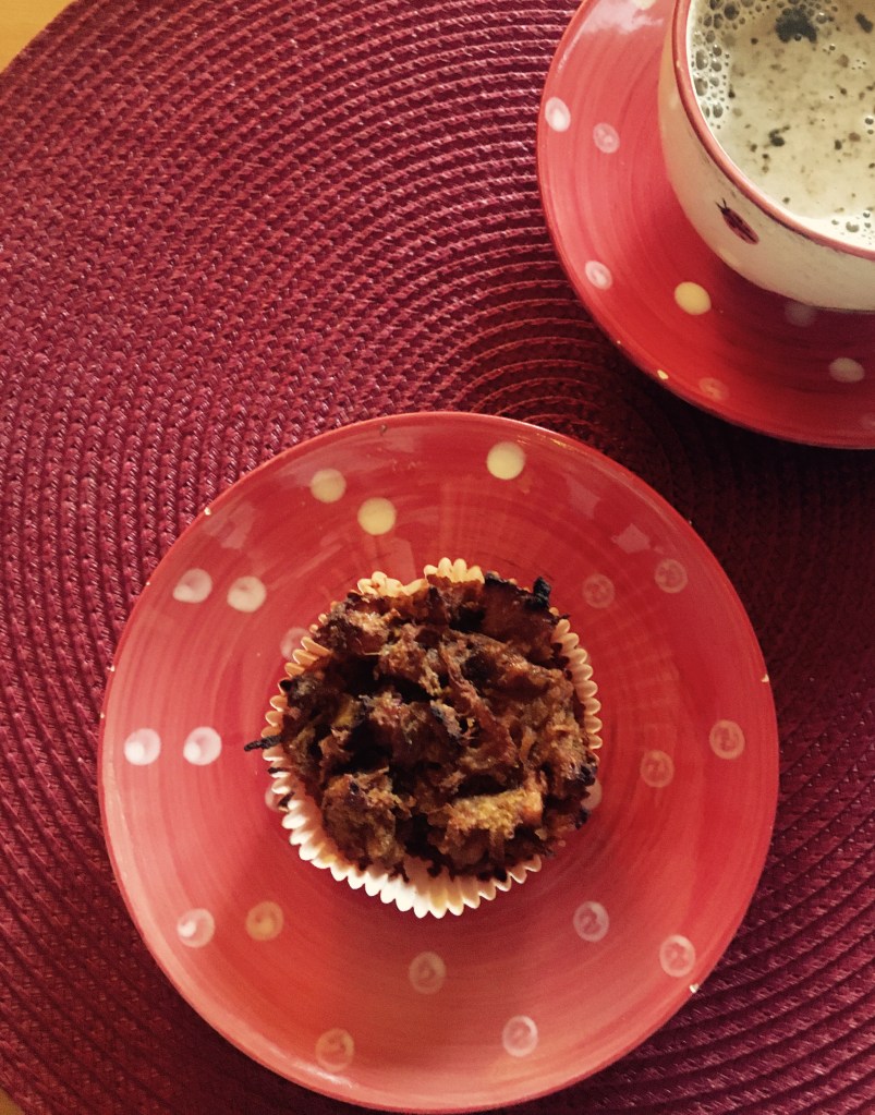 2 TL Backpulver, 1TL Zimt und 1/2 TL Kardamom hinzufügen, alles vermengen und in kleine Muffinförmchen füllen