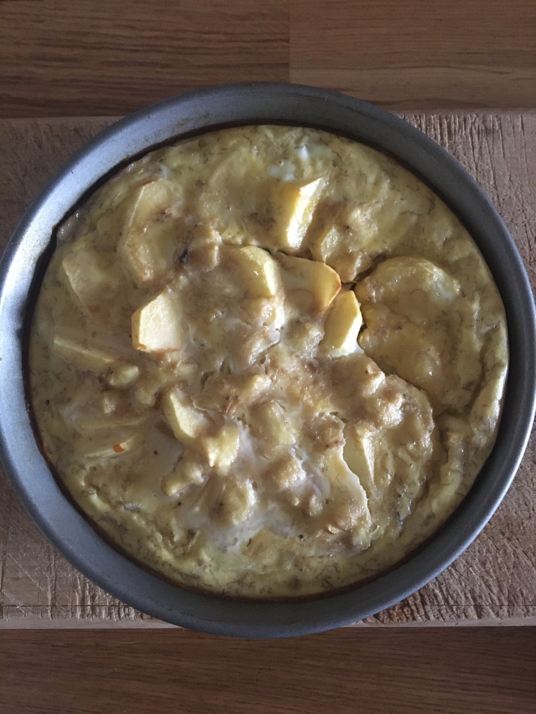 Den Guss über die Äpfel geben und bei ca 200 Grad für ca 30 Minuten in der Mitte oder bei Gas eher in der oberen Hälte goldbraun backen.