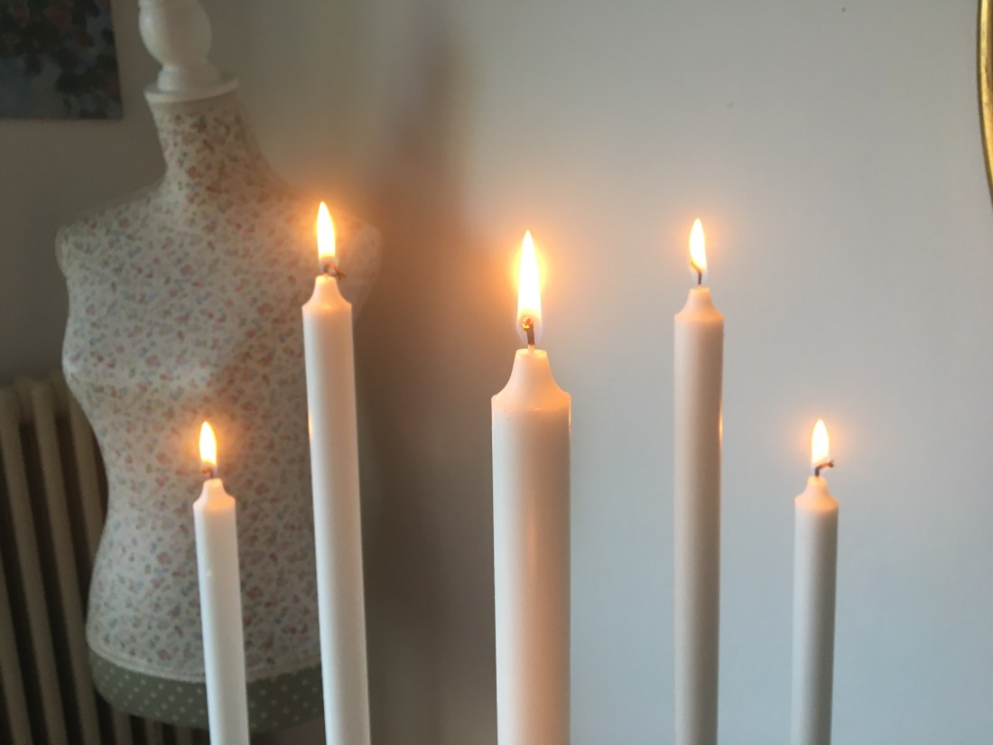 Zünde Dir wie in Rüdiger Dahlkes Buch „Jetzt einfach atmen“ so wunderbar beschrieben, für jede Begebenheit des Tages, die Du hinter Dir lassen möchtest eine Kerze an. Nimm Dir für jede Kerze ein Thema vor, blase sie aus und lasse nun die Sache, die Dich belastet mit dem selbe Atemzug ziehen.
