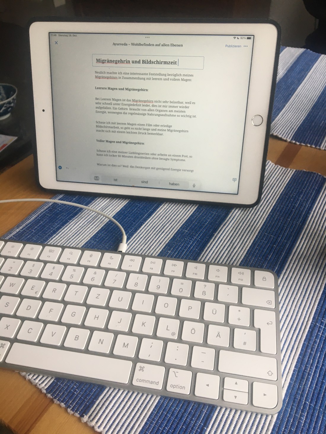 Schaue ich eine meiner Lieblingsserien oder arbeite an einem Post, so kann ich locker 60 Minuten dranbleiben ohne besagte Symptome.